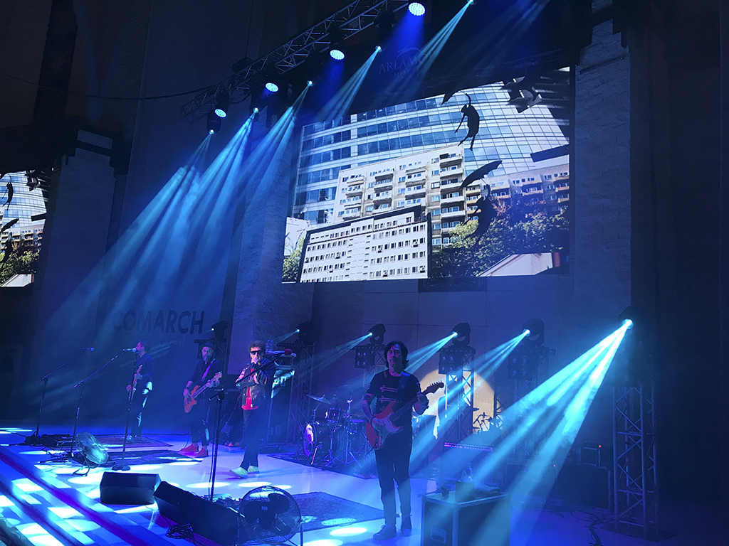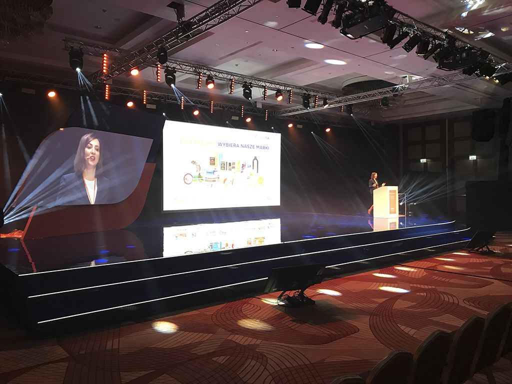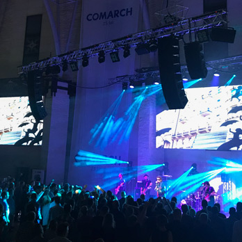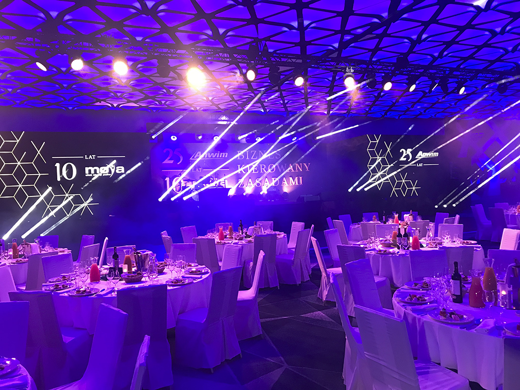 Wraz z profesjonalną obsługą zapewniamy ekrany diodowe, projekcyjne, oświetlenie sceniczne oraz nagłośnienie.